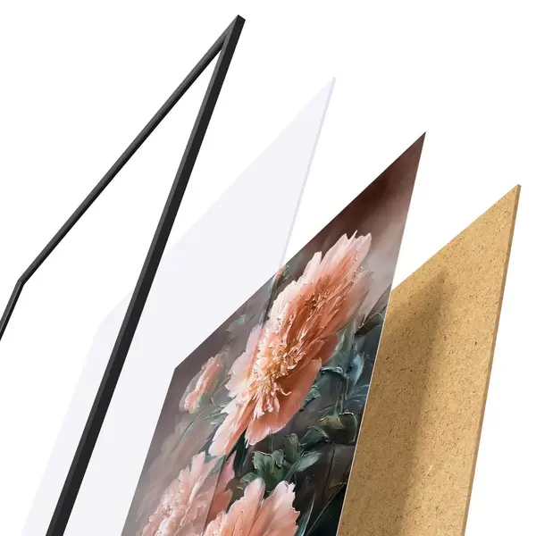Plakát se skládá z rámu, plexiskla, tištěného obrazu a dřevotřískového podkladu. Díky úchytům na zadní straně lze plakát ihned zavěsit na zeď.