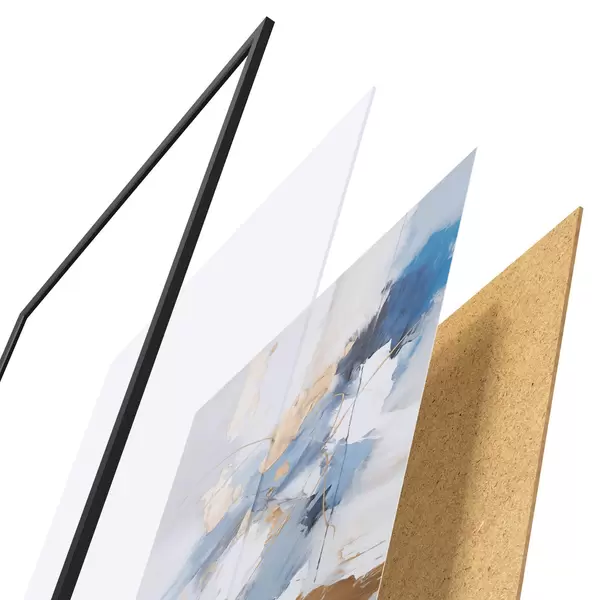 Plakát se skládá z rámu, plexiskla, tištěného obrazu a dřevotřískového podkladu. Díky úchytům na zadní straně lze plakát ihned zavěsit na zeď.