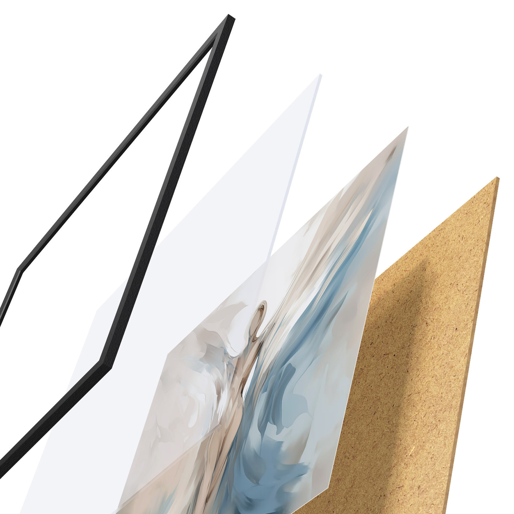 Plakát se skládá z rámu, plexiskla, tištěného obrazu a dřevotřískového podkladu. Díky úchytům na zadní straně lze plakát ihned zavěsit na zeď.