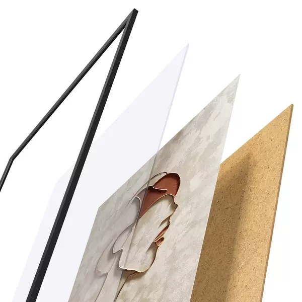 Plakát se skládá z rámu, plexiskla, tištěného obrazu a dřevotřískového podkladu. Díky úchytům na zadní straně lze plakát ihned zavěsit na zeď.