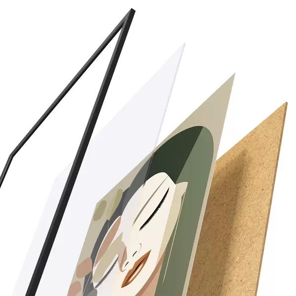 Plakát se skládá z rámu, plexiskla, tištěného obrazu a dřevotřískového podkladu. Díky úchytům na zadní straně lze plakát ihned zavěsit na zeď.