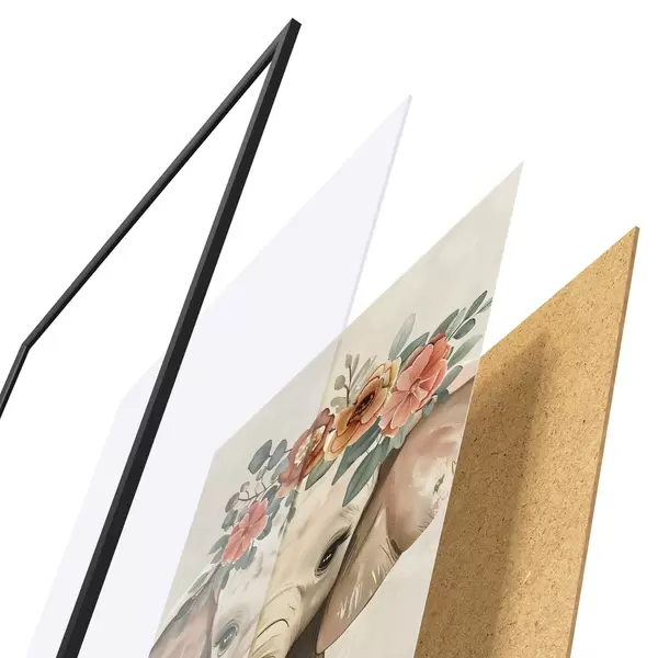 Plakát se skládá z rámu, plexiskla, tištěného obrazu a dřevotřískového podkladu. Díky úchytům na zadní straně lze plakát ihned zavěsit na zeď.