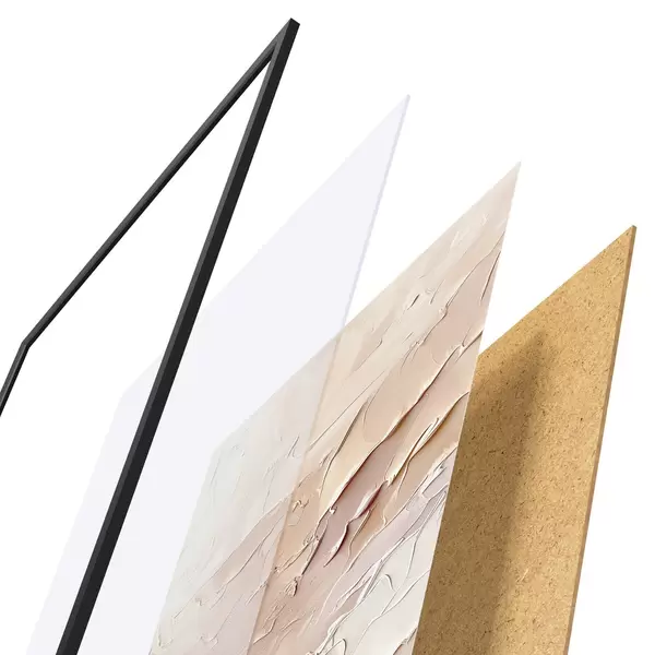 Plakát se skládá z rámu, plexiskla, tištěného obrazu a dřevotřískového podkladu. Díky úchytům na zadní straně lze plakát ihned zavěsit na zeď.