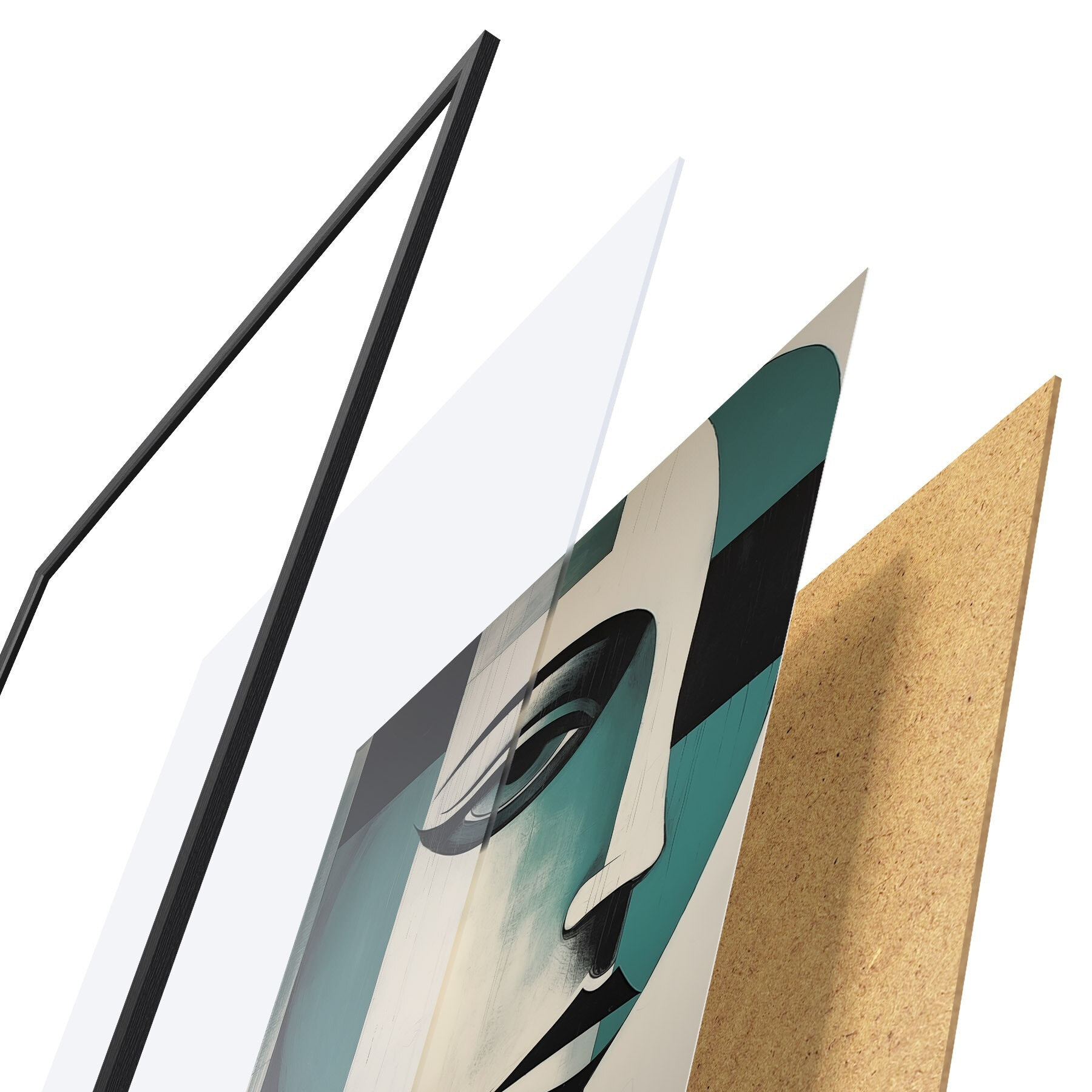 Plakát se skládá z rámu, plexiskla, tištěného obrazu a dřevotřískového podkladu. Díky úchytům na zadní straně lze plakát ihned zavěsit na zeď.