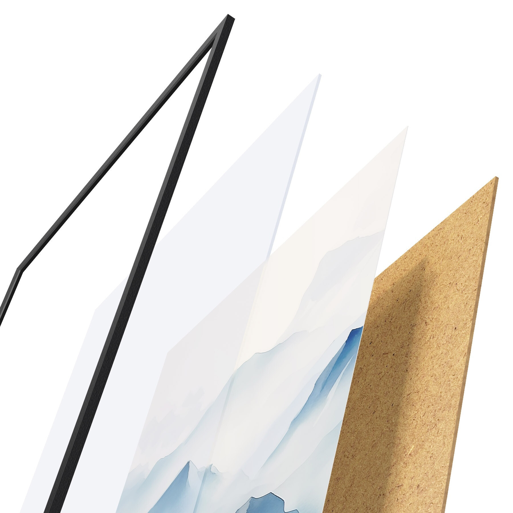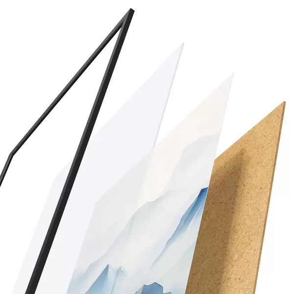 Plakát se skládá z rámu, plexiskla, tištěného obrazu a dřevotřískového podkladu. Díky úchytům na zadní straně lze plakát ihned zavěsit na zeď.