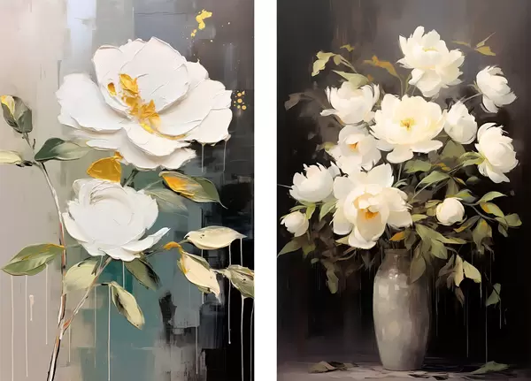 Poster Bílé pivoňky na tmavém pozadí: dekorativní kompozice Č. d00634