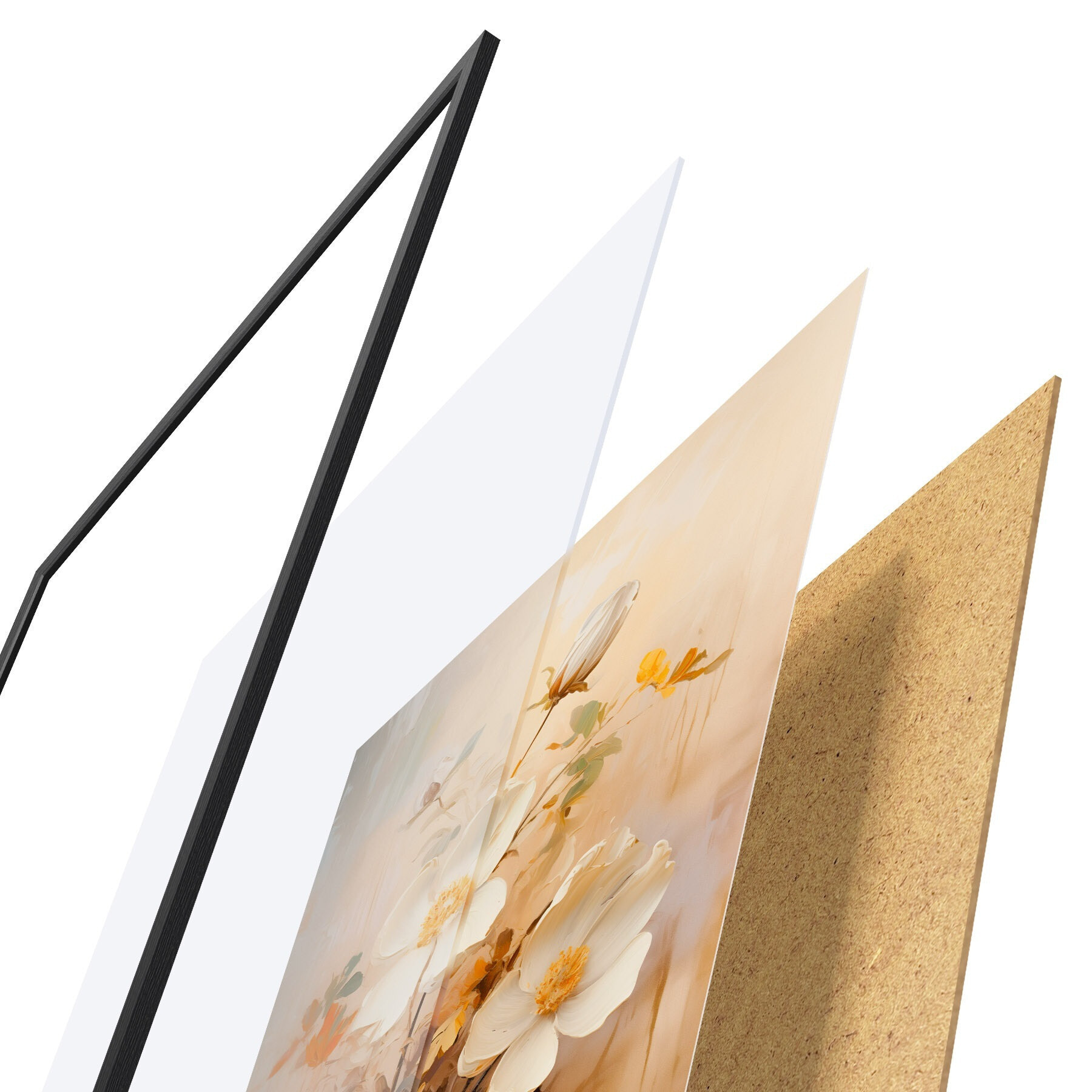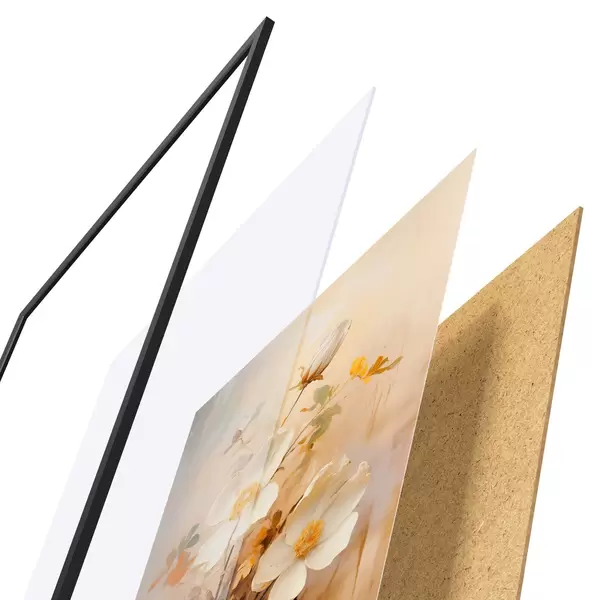 Plakát se skládá z rámu, plexiskla, tištěného obrazu a dřevotřískového podkladu. Díky úchytům na zadní straně lze plakát ihned zavěsit na zeď.