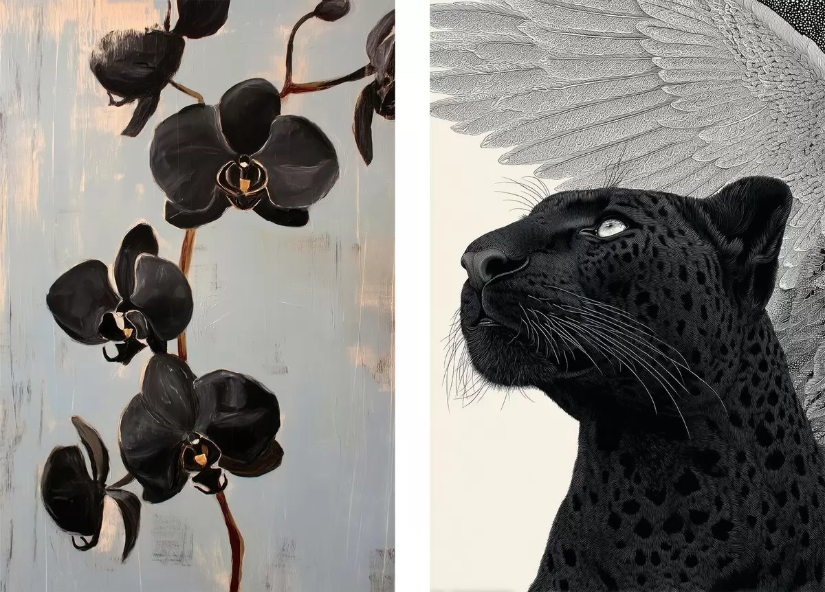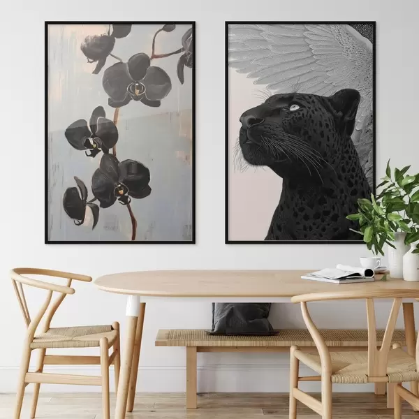 Poster Tmavé orchideje a okřídlená šelma: umělecká kompozice Č. d00640