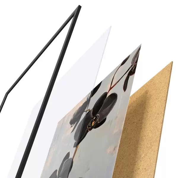 Plakát se skládá z rámu, plexiskla, tištěného obrazu a dřevotřískového podkladu. Díky úchytům na zadní straně lze plakát ihned zavěsit na zeď.