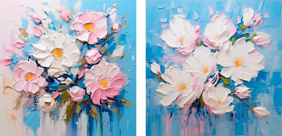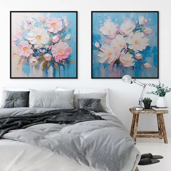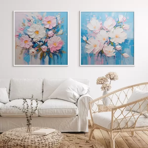 Poster Abstraktní květiny: dekorativní kompozice v růžových a modrých tónech Č. d00643