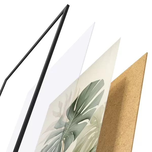 Plakát se skládá z rámu, plexiskla, tištěného obrazu a dřevotřískového podkladu. Díky úchytům na zadní straně lze plakát ihned zavěsit na zeď.