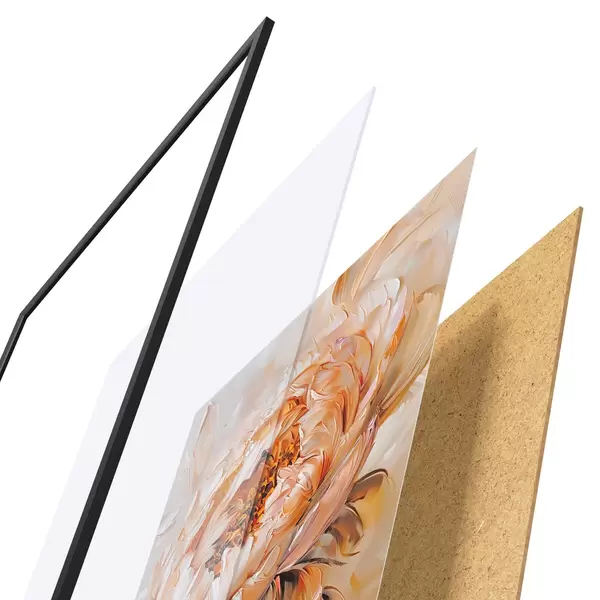 Plakát se skládá z rámu, plexiskla, tištěného obrazu a dřevotřískového podkladu. Díky úchytům na zadní straně lze plakát ihned zavěsit na zeď.