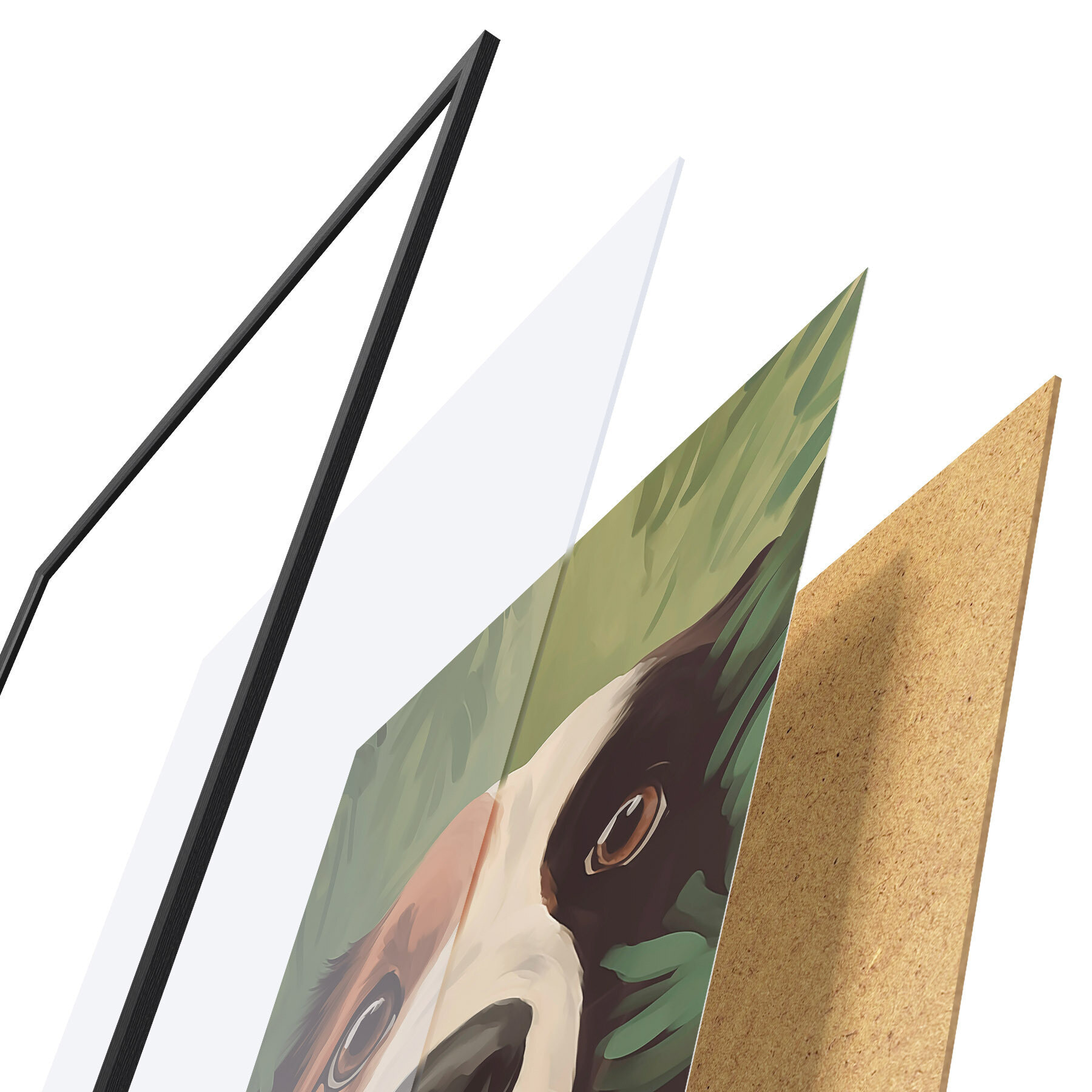 Plakát se skládá z rámu, plexiskla, tištěného obrazu a dřevotřískového podkladu. Díky úchytům na zadní straně lze plakát ihned zavěsit na zeď.