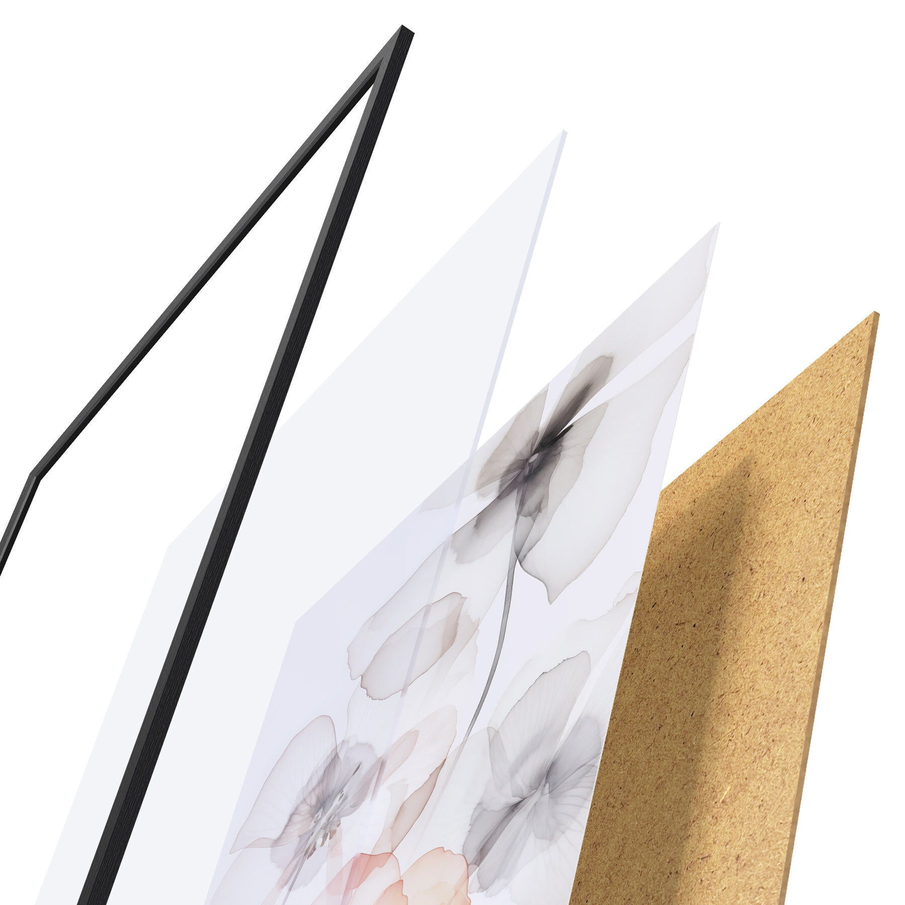 Plakát se skládá z rámu, plexiskla, tištěného obrazu a dřevotřískového podkladu. Díky úchytům na zadní straně lze plakát ihned zavěsit na zeď.