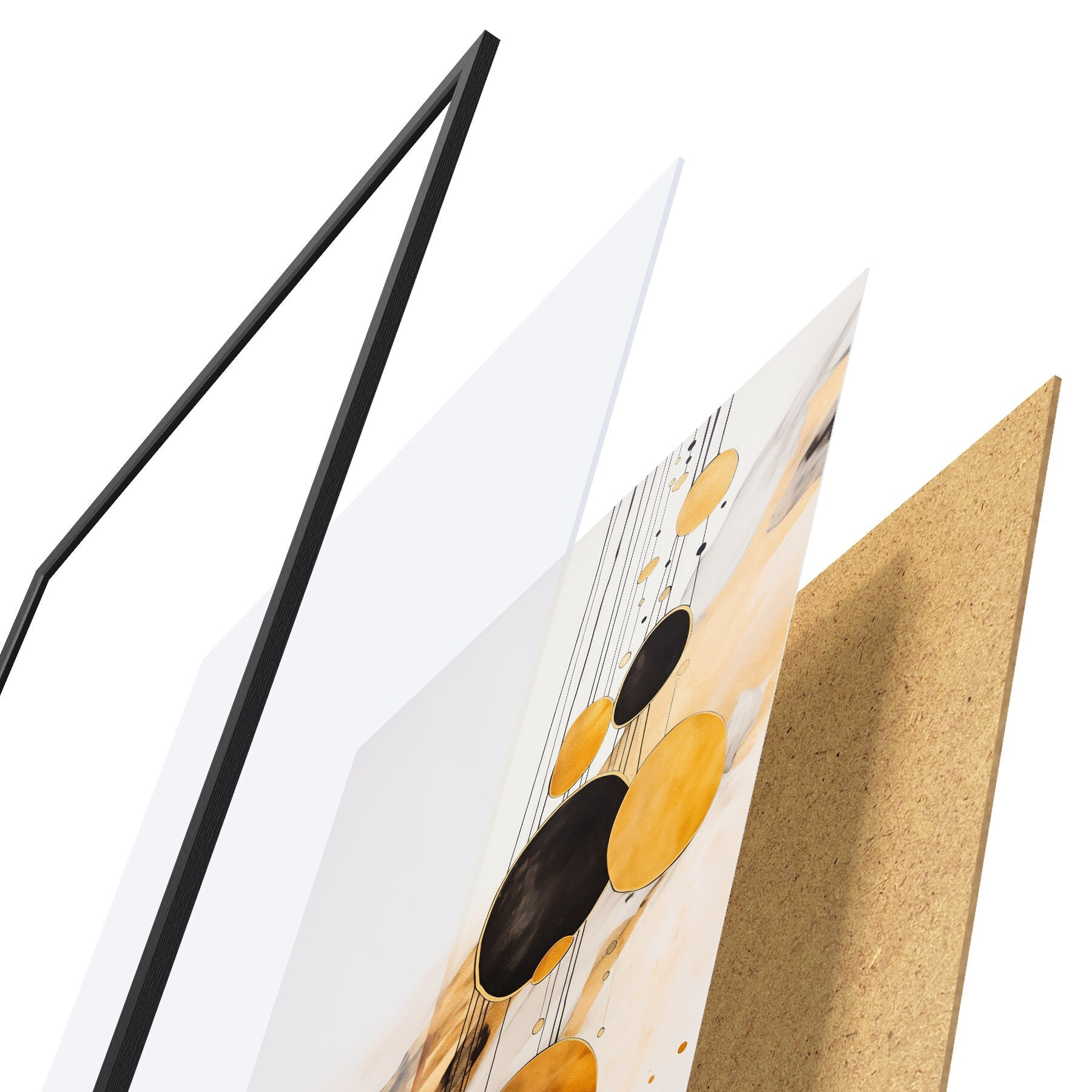Plakát se skládá z rámu, plexiskla, tištěného obrazu a dřevotřískového podkladu. Díky úchytům na zadní straně lze plakát ihned zavěsit na zeď.