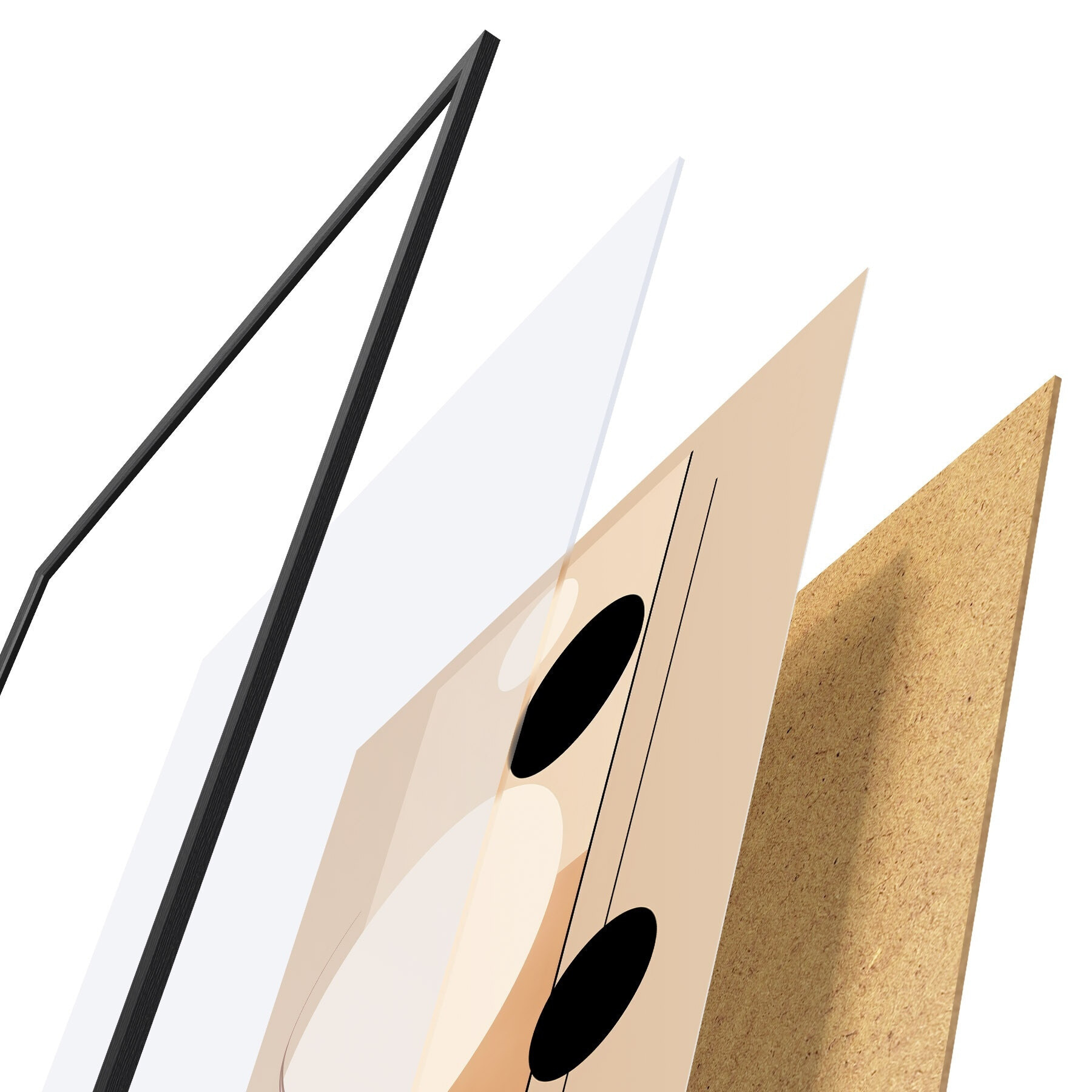 Plakát se skládá z rámu, plexiskla, tištěného obrazu a dřevotřískového podkladu. Díky úchytům na zadní straně lze plakát ihned zavěsit na zeď.