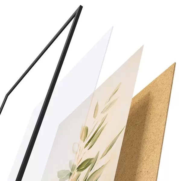 Plakát se skládá z rámu, plexiskla, tištěného obrazu a dřevotřískového podkladu. Díky úchytům na zadní straně lze plakát ihned zavěsit na zeď.