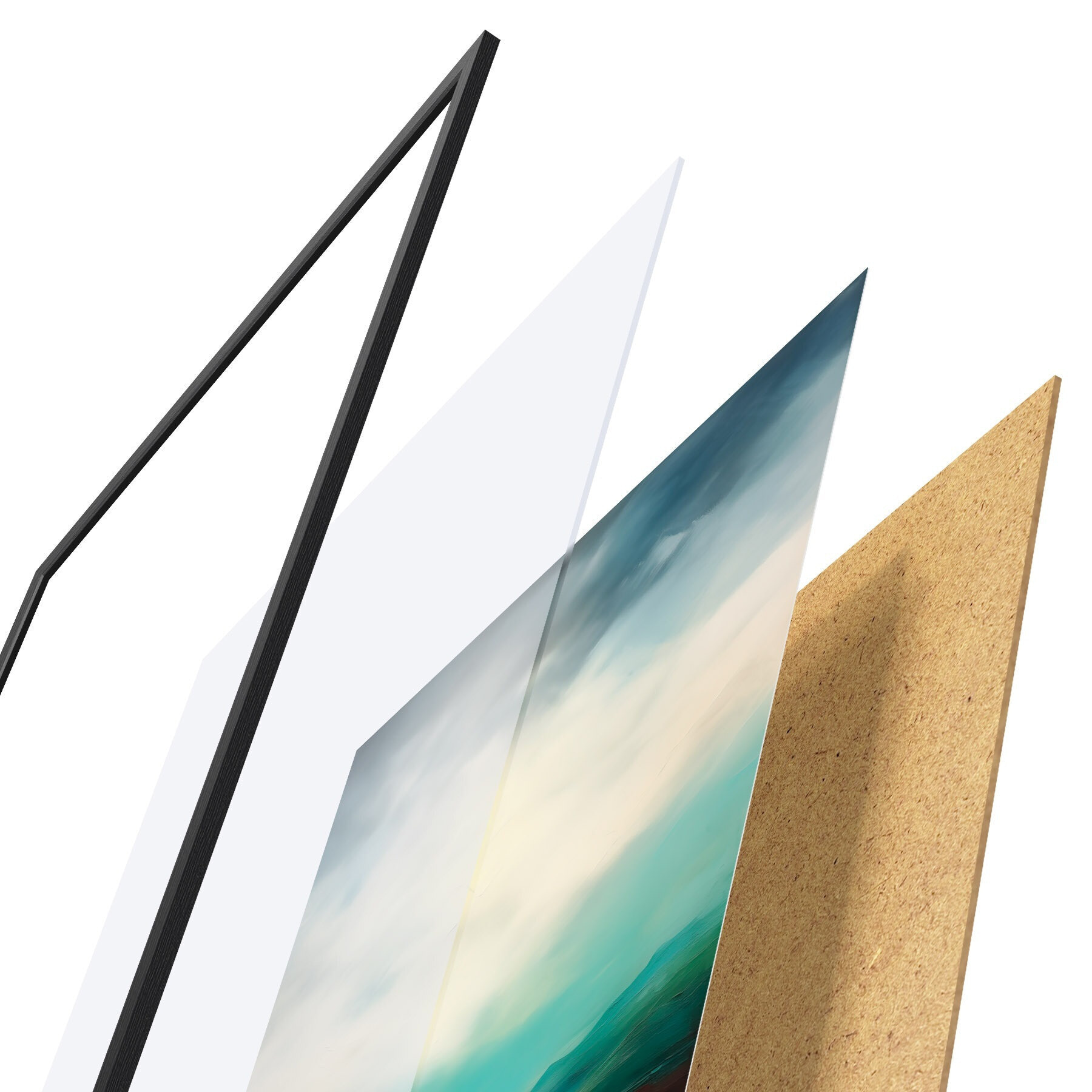 Plakát se skládá z rámu, plexiskla, tištěného obrazu a dřevotřískového podkladu. Díky úchytům na zadní straně lze plakát ihned zavěsit na zeď.