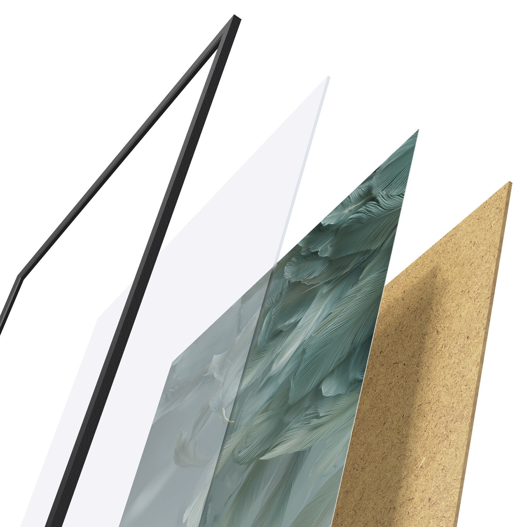 Plakát se skládá z rámu, plexiskla, tištěného obrazu a dřevotřískového podkladu. Díky úchytům na zadní straně lze plakát ihned zavěsit na zeď.