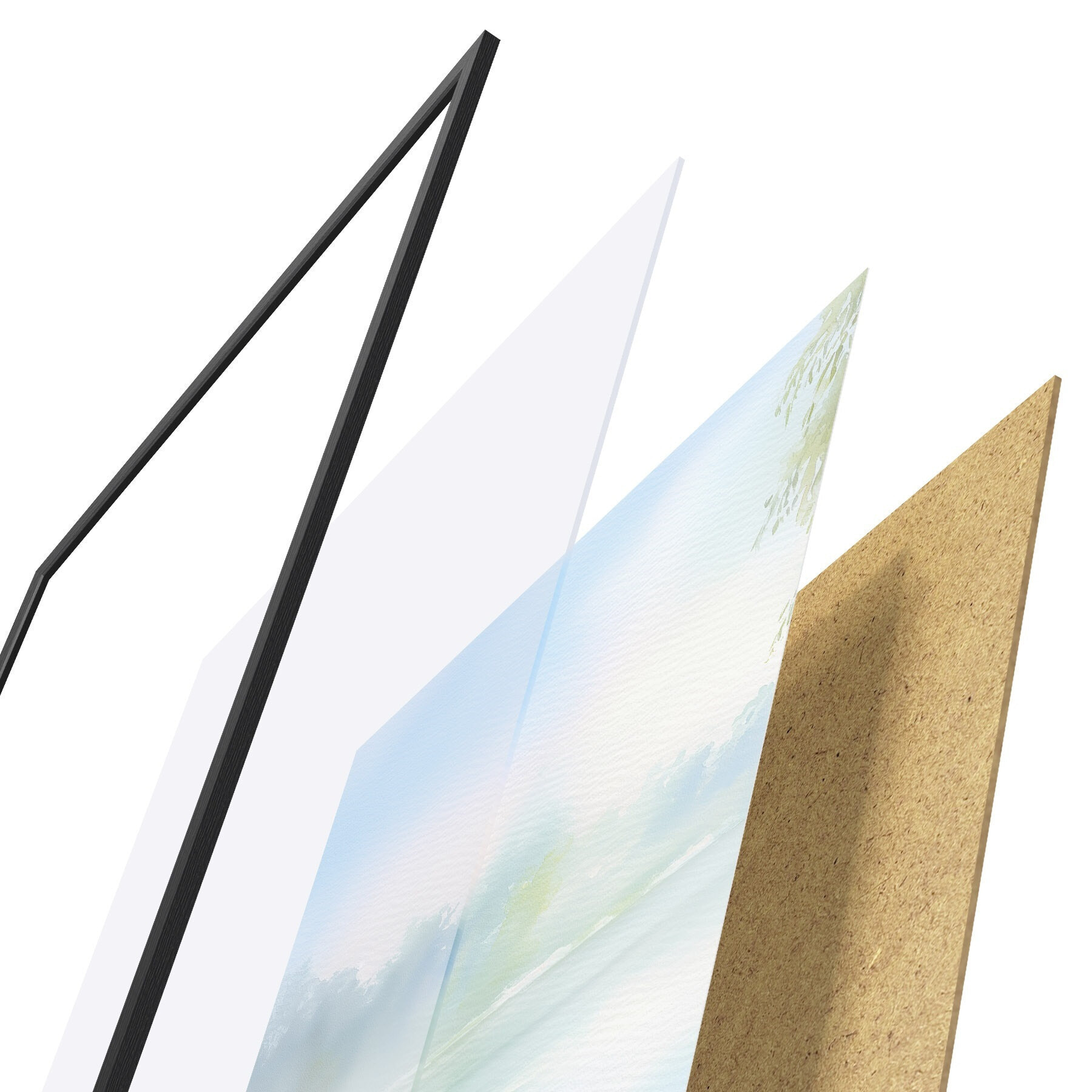 Plakát se skládá z rámu, plexiskla, tištěného obrazu a dřevotřískového podkladu. Díky úchytům na zadní straně lze plakát ihned zavěsit na zeď.