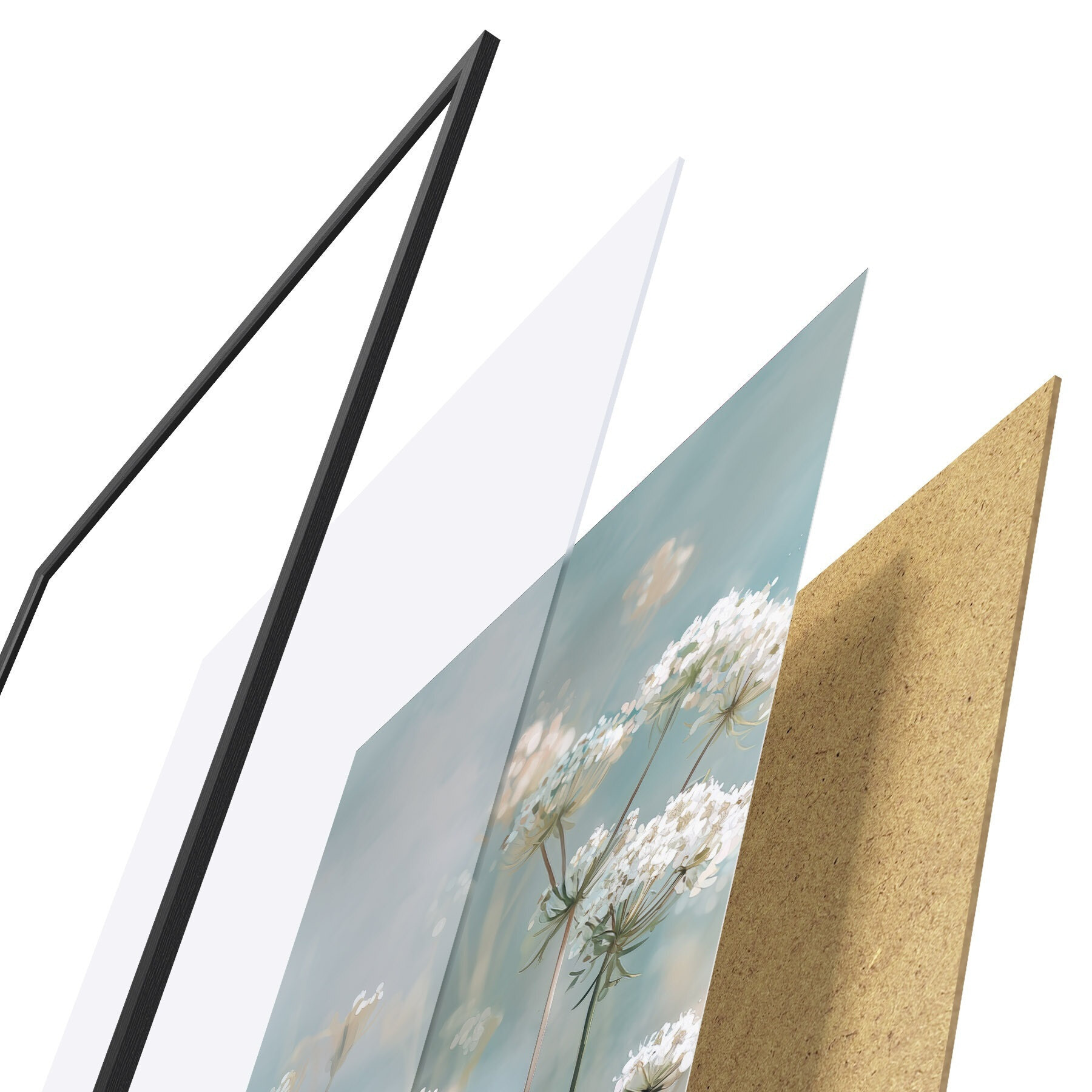 Plakát se skládá z rámu, plexiskla, tištěného obrazu a dřevotřískového podkladu. Díky úchytům na zadní straně lze plakát ihned zavěsit na zeď.