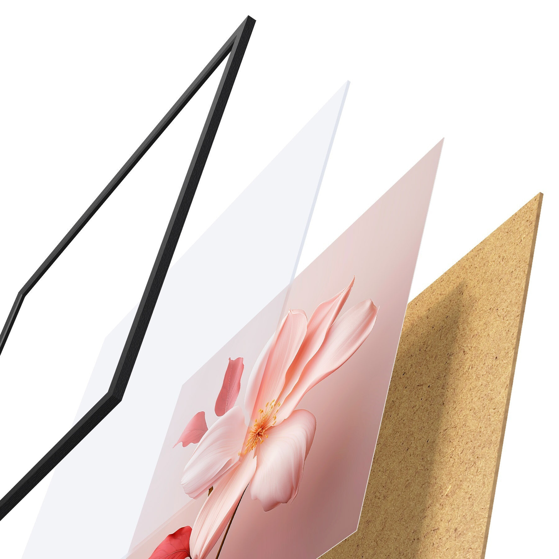 Plakát se skládá z rámu, plexiskla, tištěného obrazu a dřevotřískového podkladu. Díky úchytům na zadní straně lze plakát ihned zavěsit na zeď.
