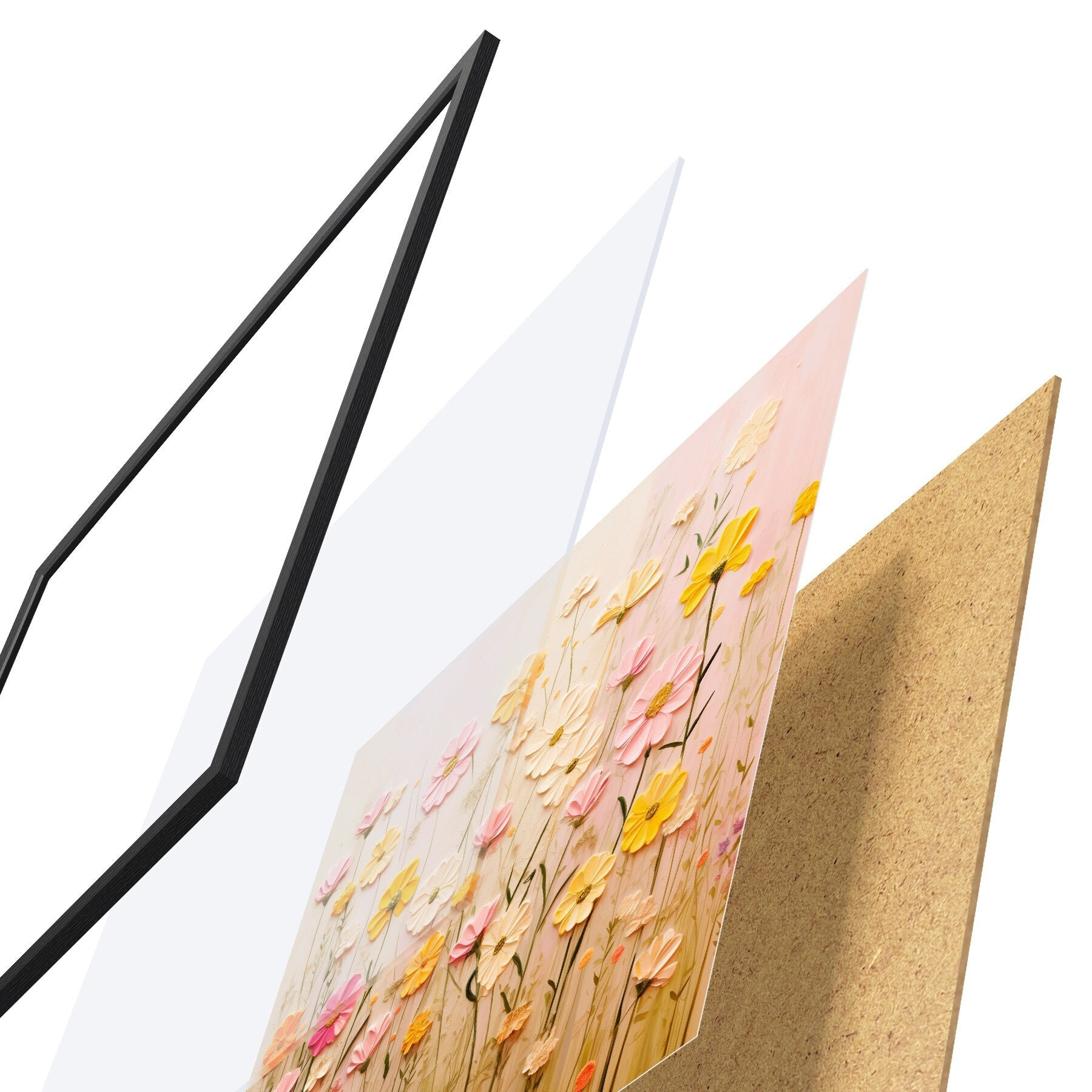 Plakát se skládá z rámu, plexiskla, tištěného obrazu a dřevotřískového podkladu. Díky úchytům na zadní straně lze plakát ihned zavěsit na zeď.