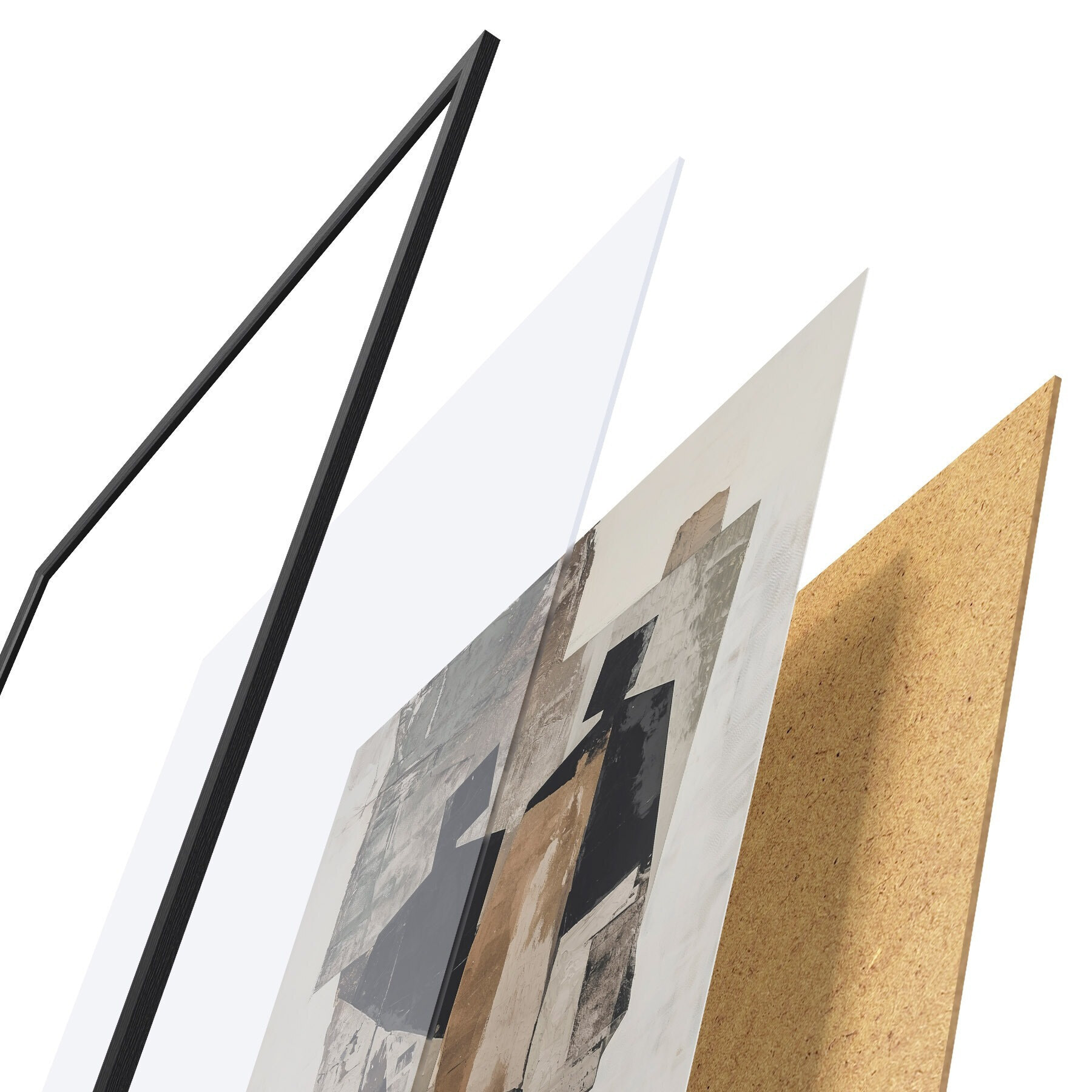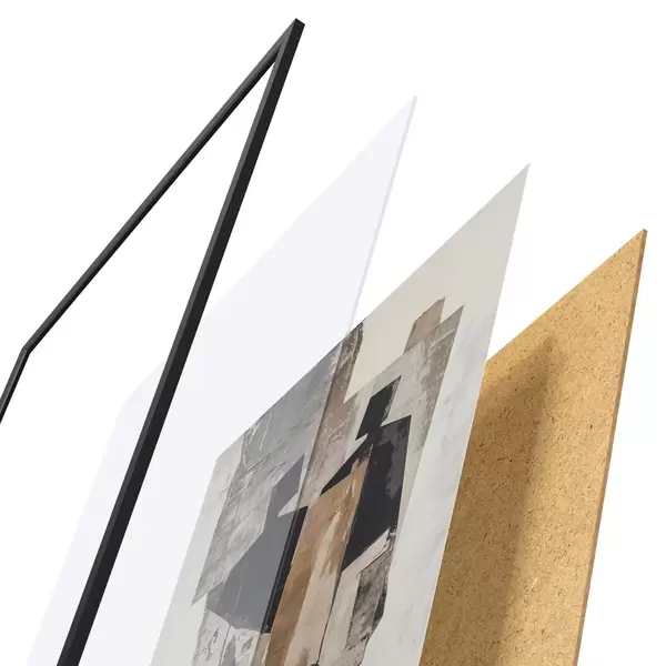 Plakát se skládá z rámu, plexiskla, tištěného obrazu a dřevotřískového podkladu. Díky úchytům na zadní straně lze plakát ihned zavěsit na zeď.