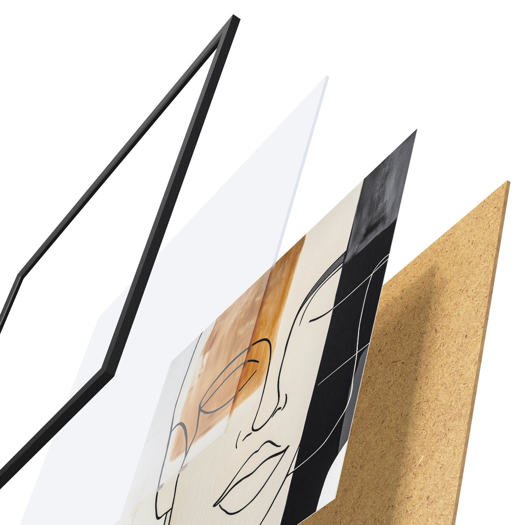 Plakát se skládá z rámu, plexiskla, tištěného obrazu a dřevotřískového podkladu. Díky úchytům na zadní straně lze plakát ihned zavěsit na zeď.