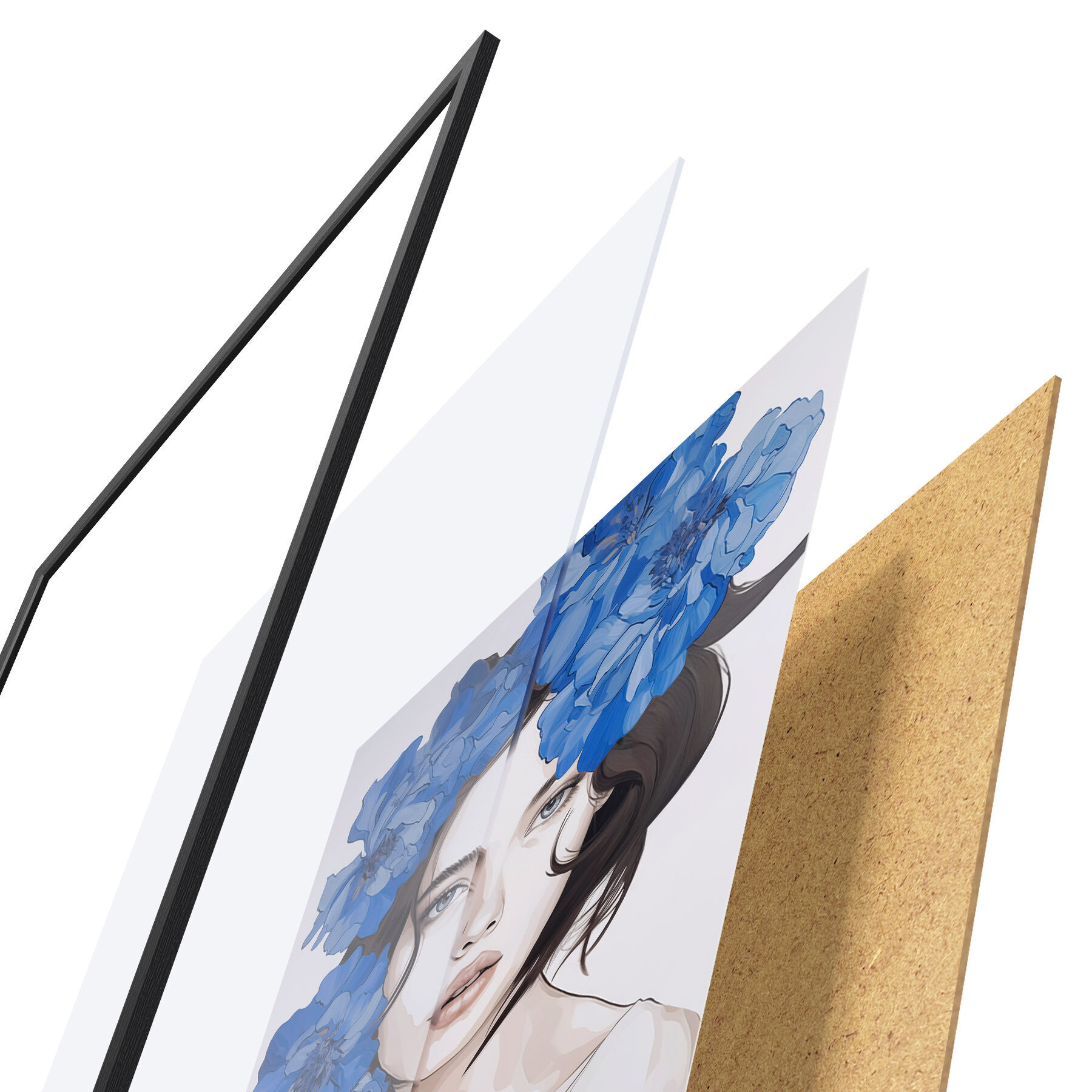 Plakát se skládá z rámu, plexiskla, tištěného obrazu a dřevotřískového podkladu. Díky úchytům na zadní straně lze plakát ihned zavěsit na zeď.