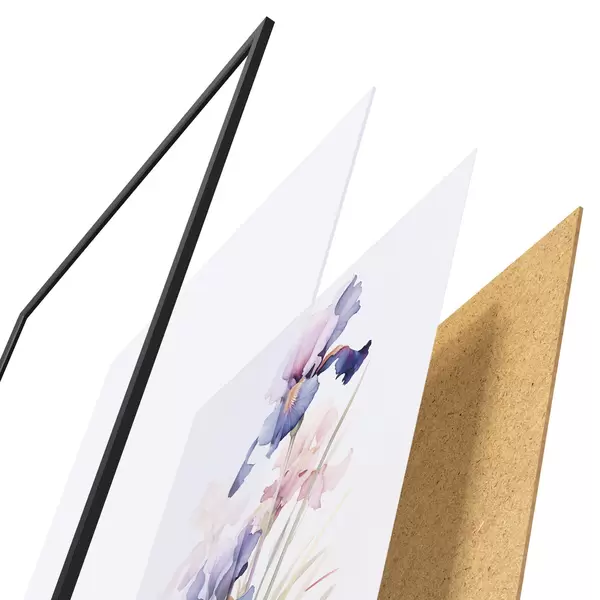 Plakát se skládá z rámu, plexiskla, tištěného obrazu a dřevotřískového podkladu. Díky úchytům na zadní straně lze plakát ihned zavěsit na zeď.