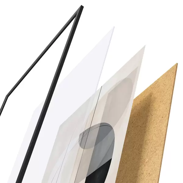Plakát se skládá z rámu, plexiskla, tištěného obrazu a dřevotřískového podkladu. Díky úchytům na zadní straně lze plakát ihned zavěsit na zeď.