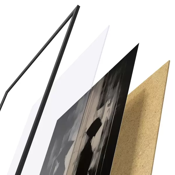 Plakát se skládá z rámu, plexiskla, tištěného obrazu a dřevotřískového podkladu. Díky úchytům na zadní straně lze plakát ihned zavěsit na zeď.