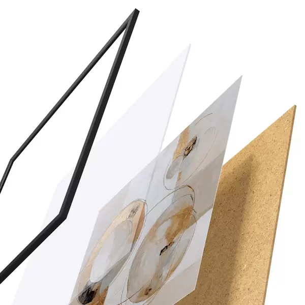 Plakát se skládá z rámu, plexiskla, tištěného obrazu a dřevotřískového podkladu. Díky úchytům na zadní straně lze plakát ihned zavěsit na zeď.