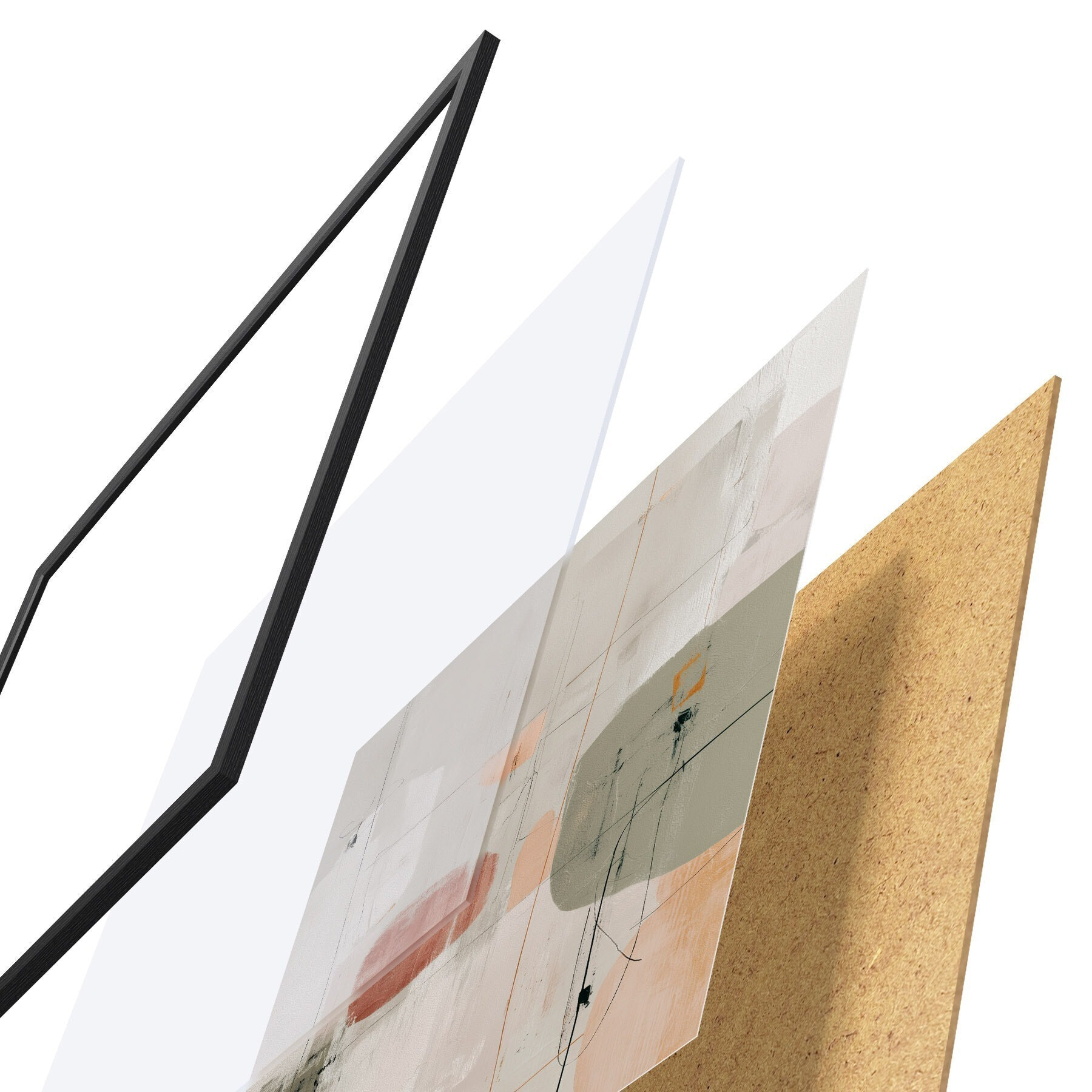 Plakát se skládá z rámu, plexiskla, tištěného obrazu a dřevotřískového podkladu. Díky úchytům na zadní straně lze plakát ihned zavěsit na zeď.