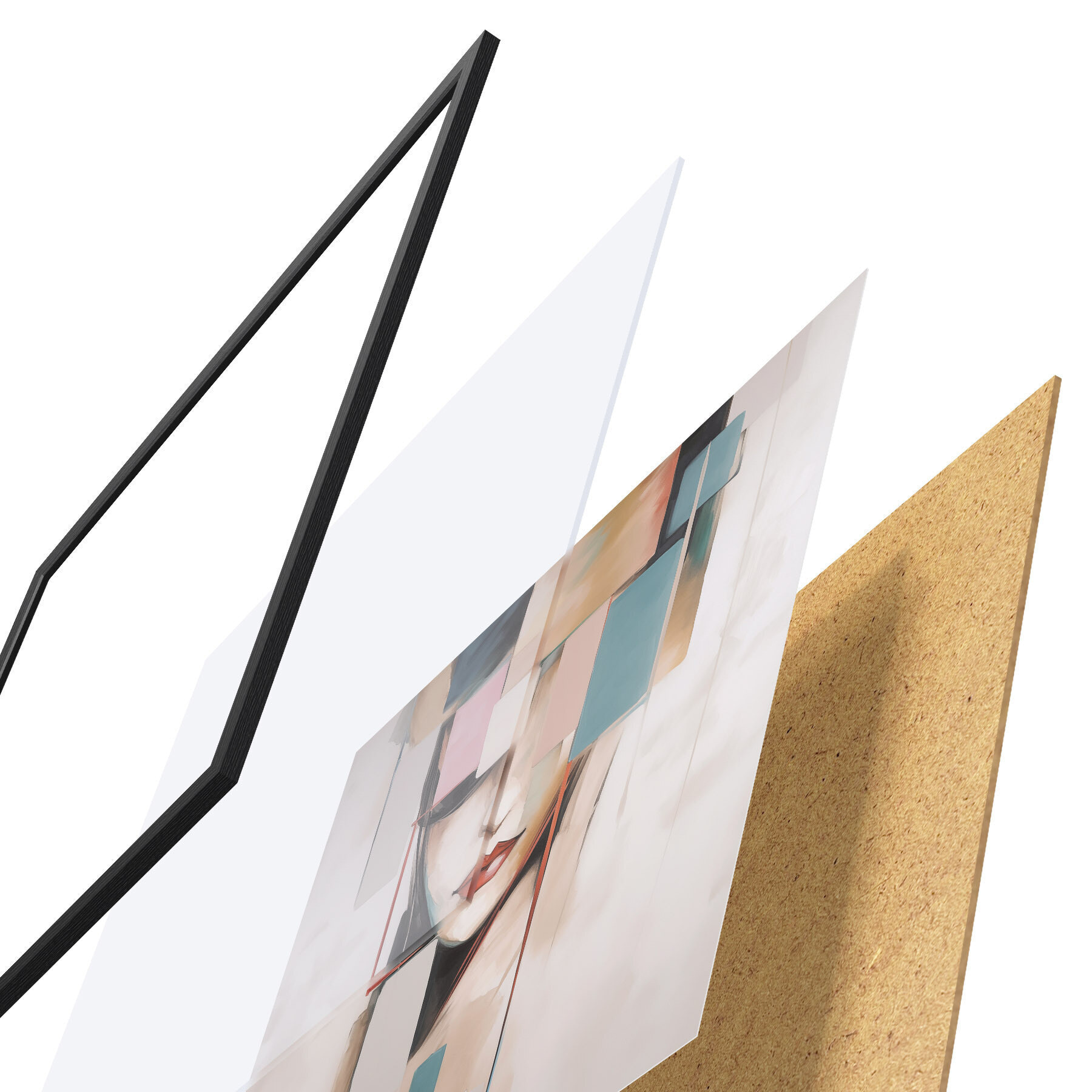 Plakát se skládá z rámu, plexiskla, tištěného obrazu a dřevotřískového podkladu. Díky úchytům na zadní straně lze plakát ihned zavěsit na zeď.