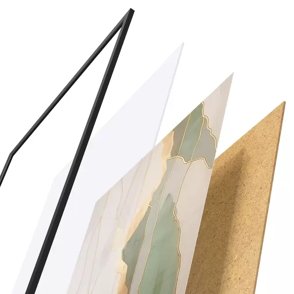 Plakát se skládá z rámu, plexiskla, tištěného obrazu a dřevotřískového podkladu. Díky úchytům na zadní straně lze plakát ihned zavěsit na zeď.
