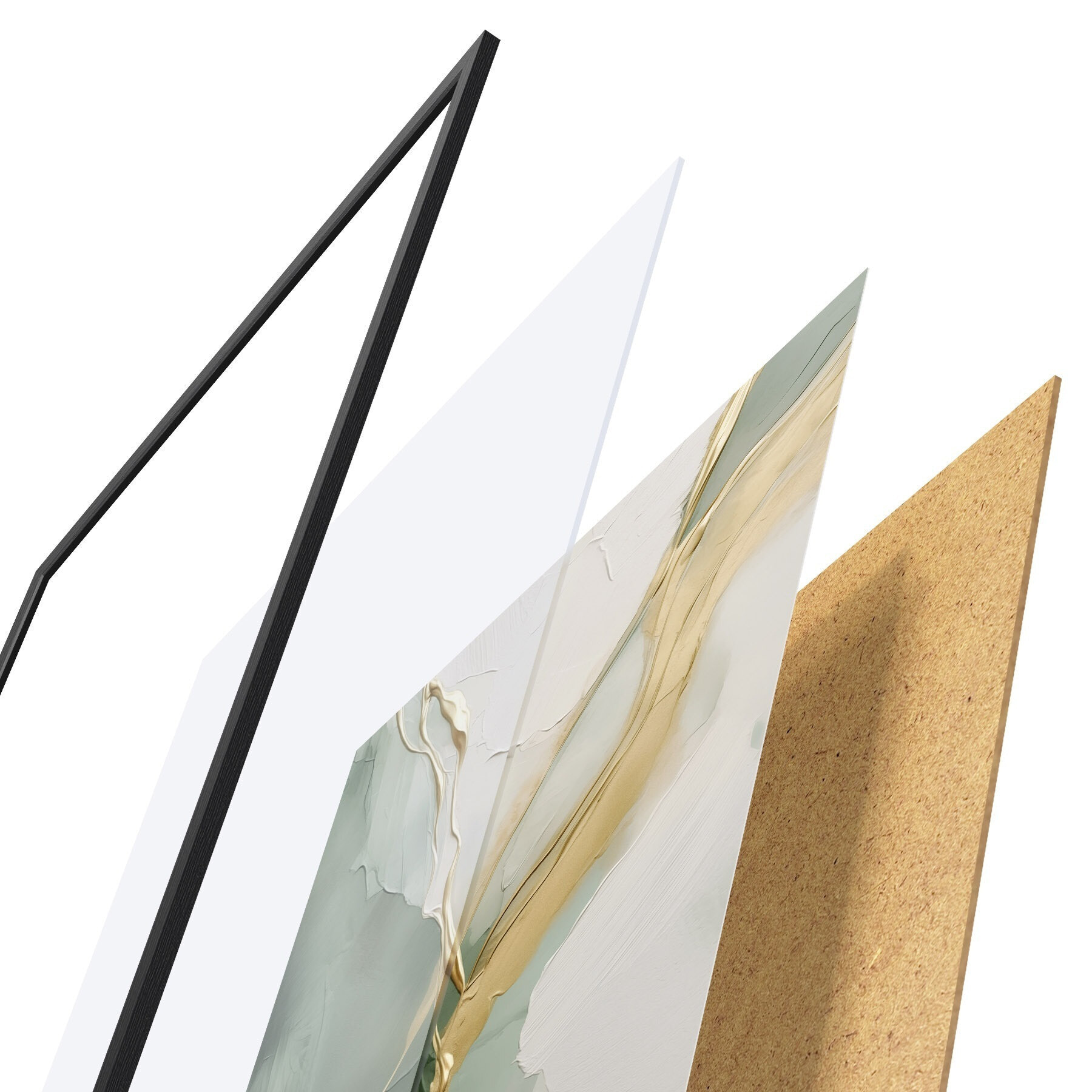 Plakát se skládá z rámu, plexiskla, tištěného obrazu a dřevotřískového podkladu. Díky úchytům na zadní straně lze plakát ihned zavěsit na zeď.
