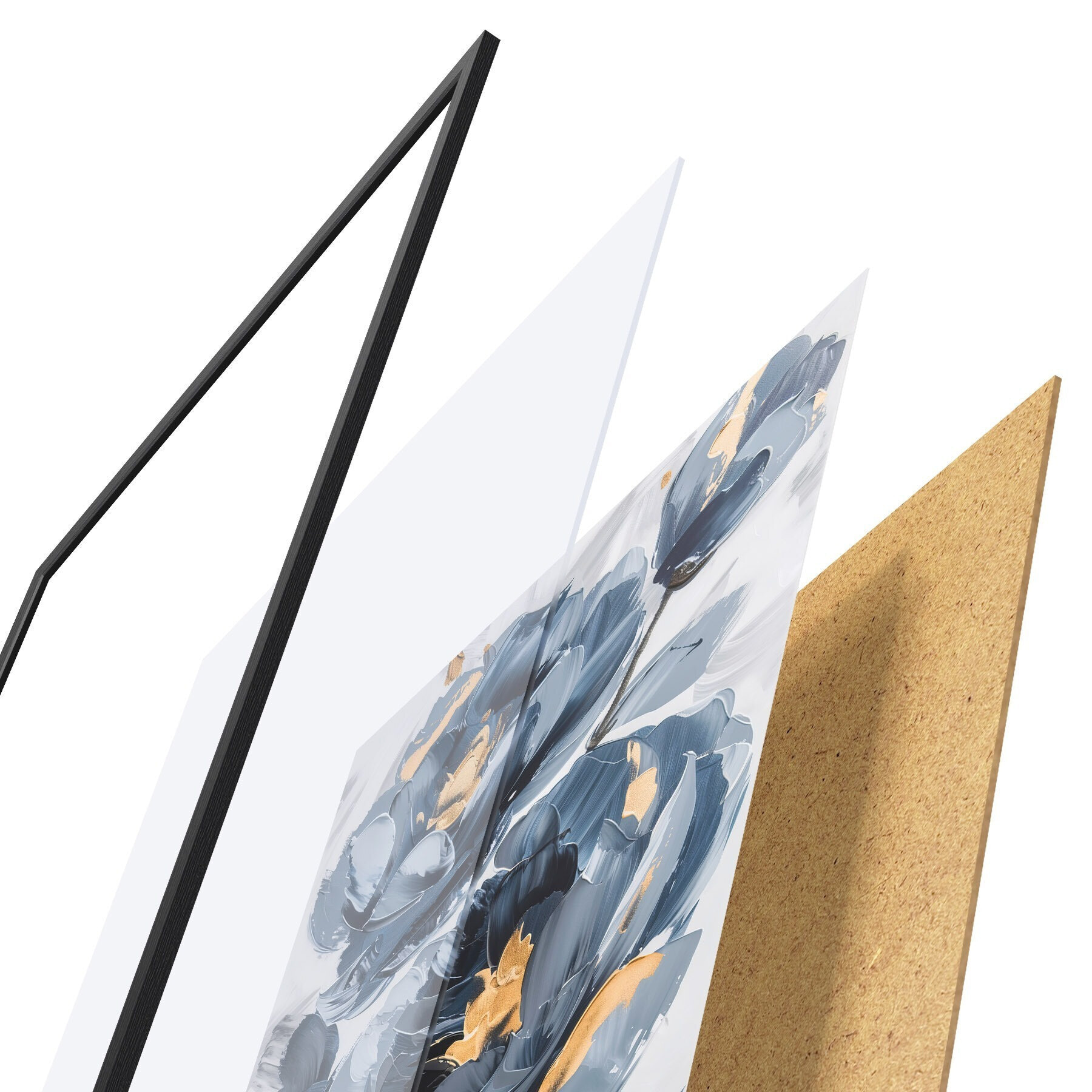 Plakát se skládá z rámu, plexiskla, tištěného obrazu a dřevotřískového podkladu. Díky úchytům na zadní straně lze plakát ihned zavěsit na zeď.