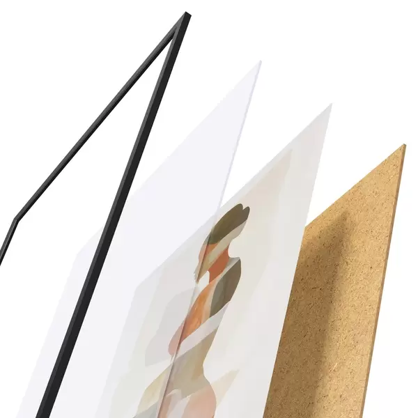 Plakát se skládá z rámu, plexiskla, tištěného obrazu a dřevotřískového podkladu. Díky úchytům na zadní straně lze plakát ihned zavěsit na zeď.