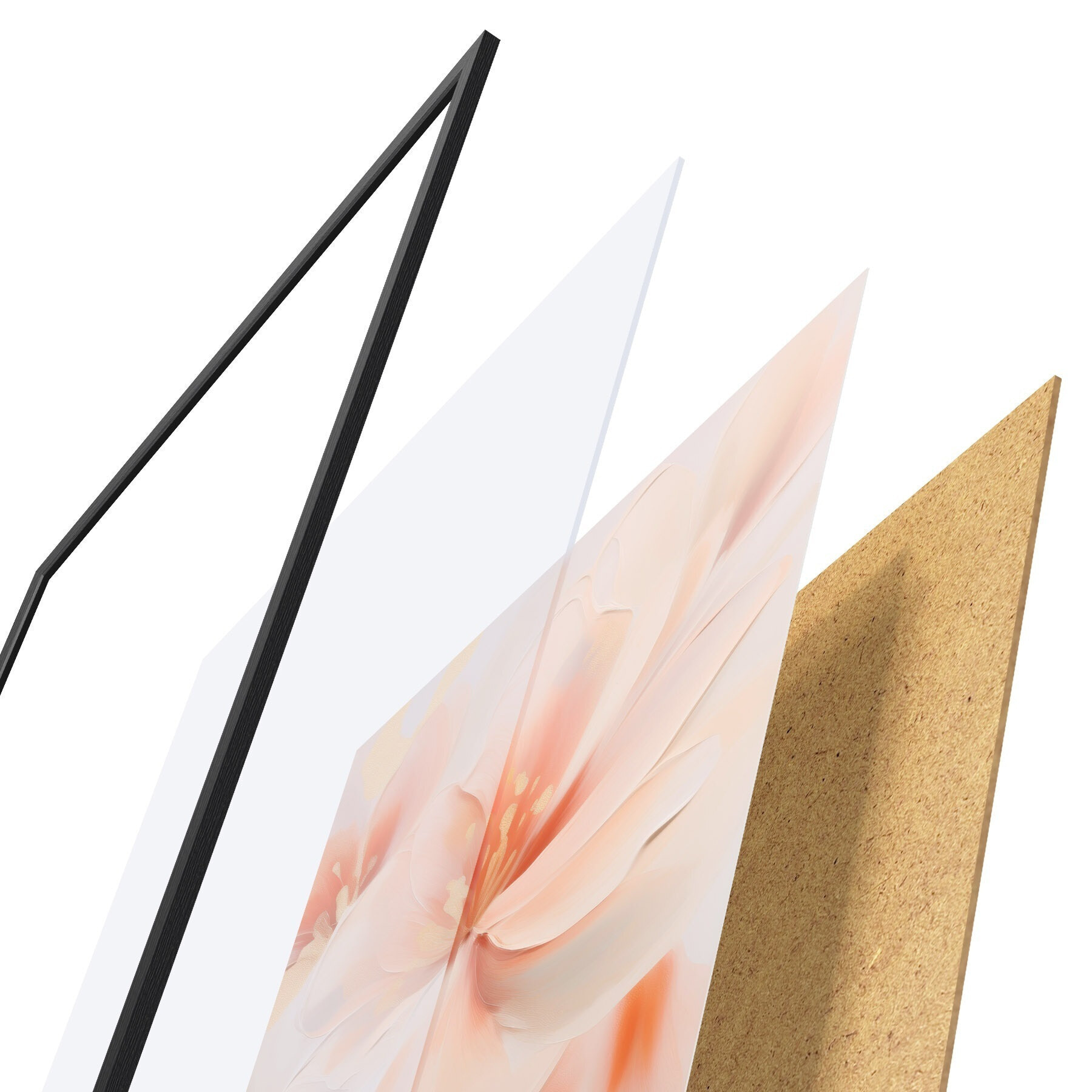 Plakát se skládá z rámu, plexiskla, tištěného obrazu a dřevotřískového podkladu. Díky úchytům na zadní straně lze plakát ihned zavěsit na zeď.