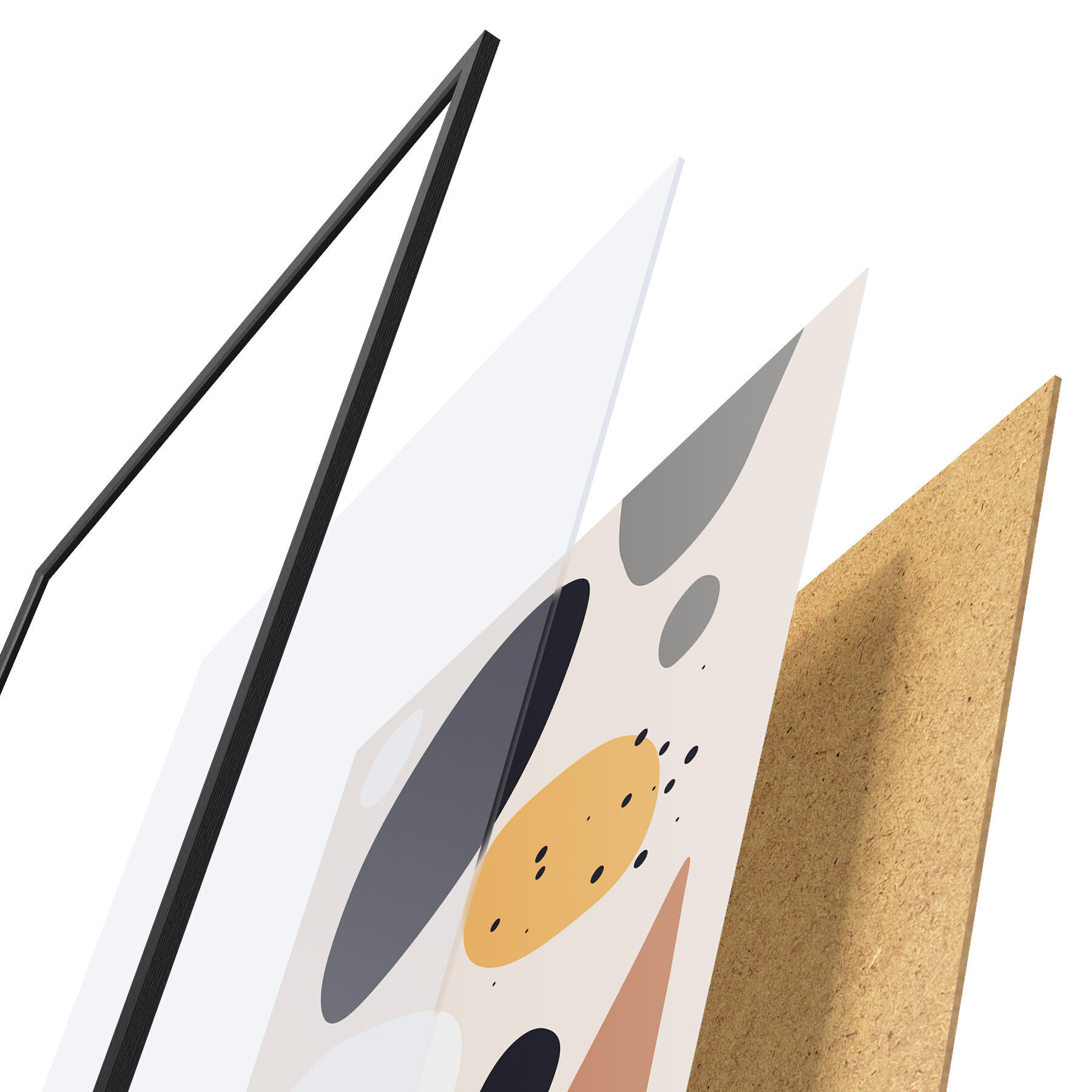 Plakát se skládá z rámu, plexiskla, tištěného obrazu a dřevotřískového podkladu. Díky úchytům na zadní straně lze plakát ihned zavěsit na zeď.