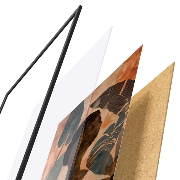 Plakát se skládá z rámu, plexiskla, tištěného obrazu a dřevotřískového podkladu. Díky úchytům na zadní straně lze plakát ihned zavěsit na zeď.