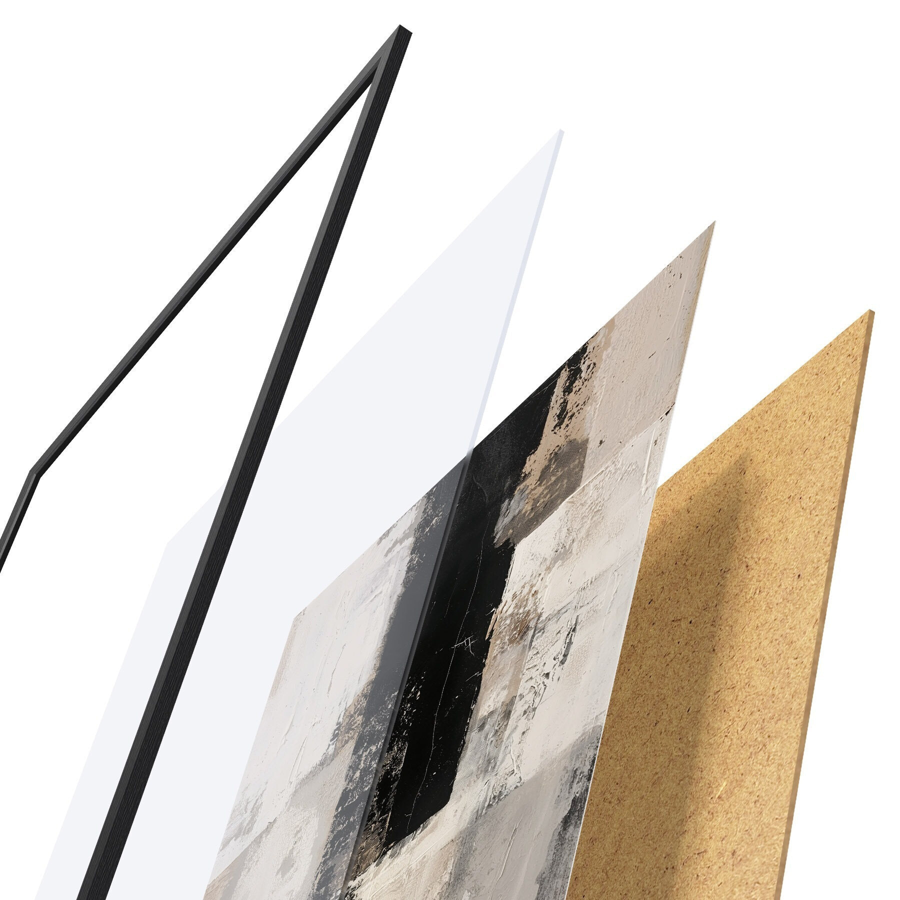 Plakát se skládá z rámu, plexiskla, tištěného obrazu a dřevotřískového podkladu. Díky úchytům na zadní straně lze plakát ihned zavěsit na zeď.