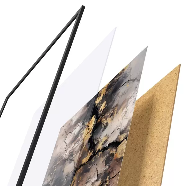 Plakát se skládá z rámu, plexiskla, tištěného obrazu a dřevotřískového podkladu. Díky úchytům na zadní straně lze plakát ihned zavěsit na zeď.