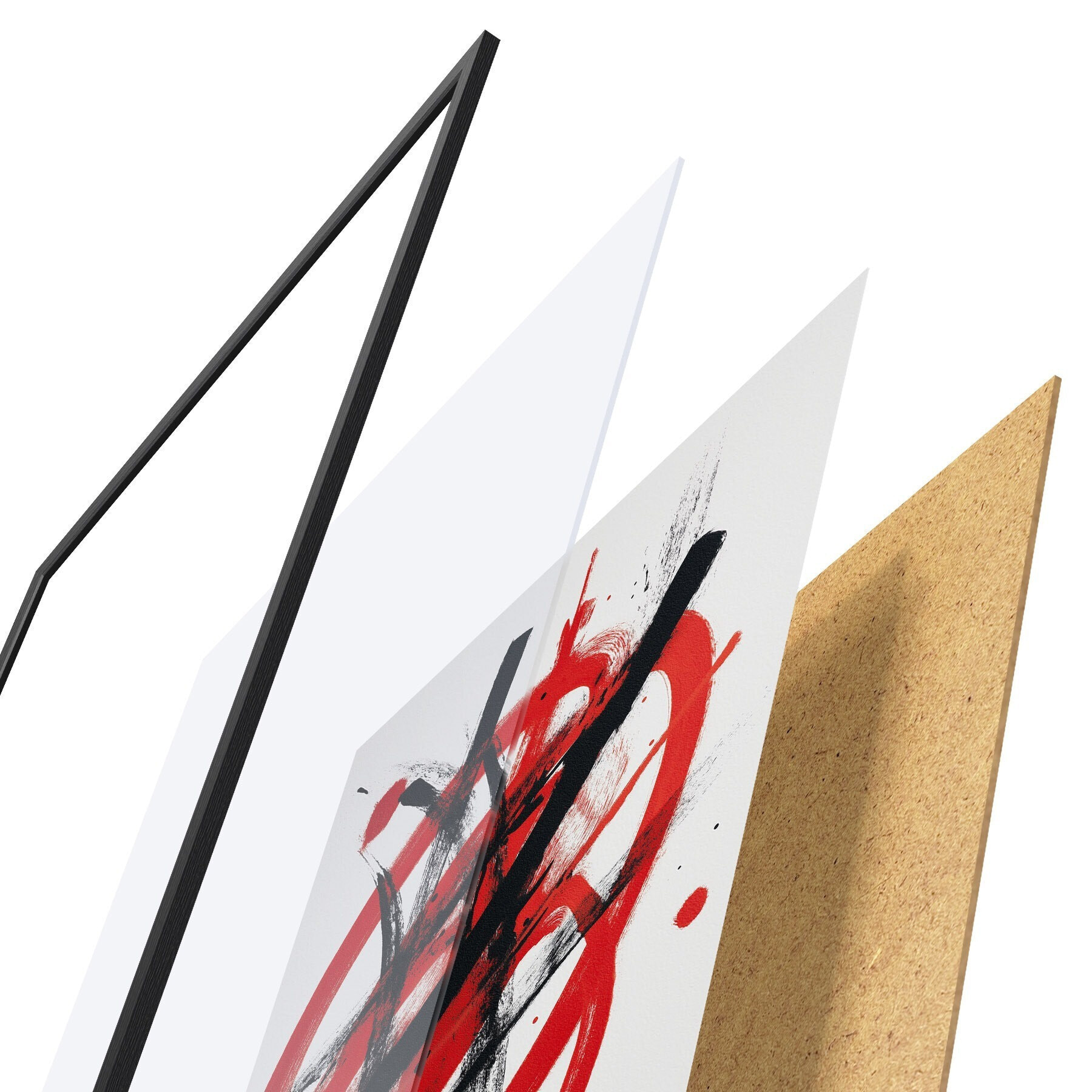 Plakát se skládá z rámu, plexiskla, tištěného obrazu a dřevotřískového podkladu. Díky úchytům na zadní straně lze plakát ihned zavěsit na zeď.
