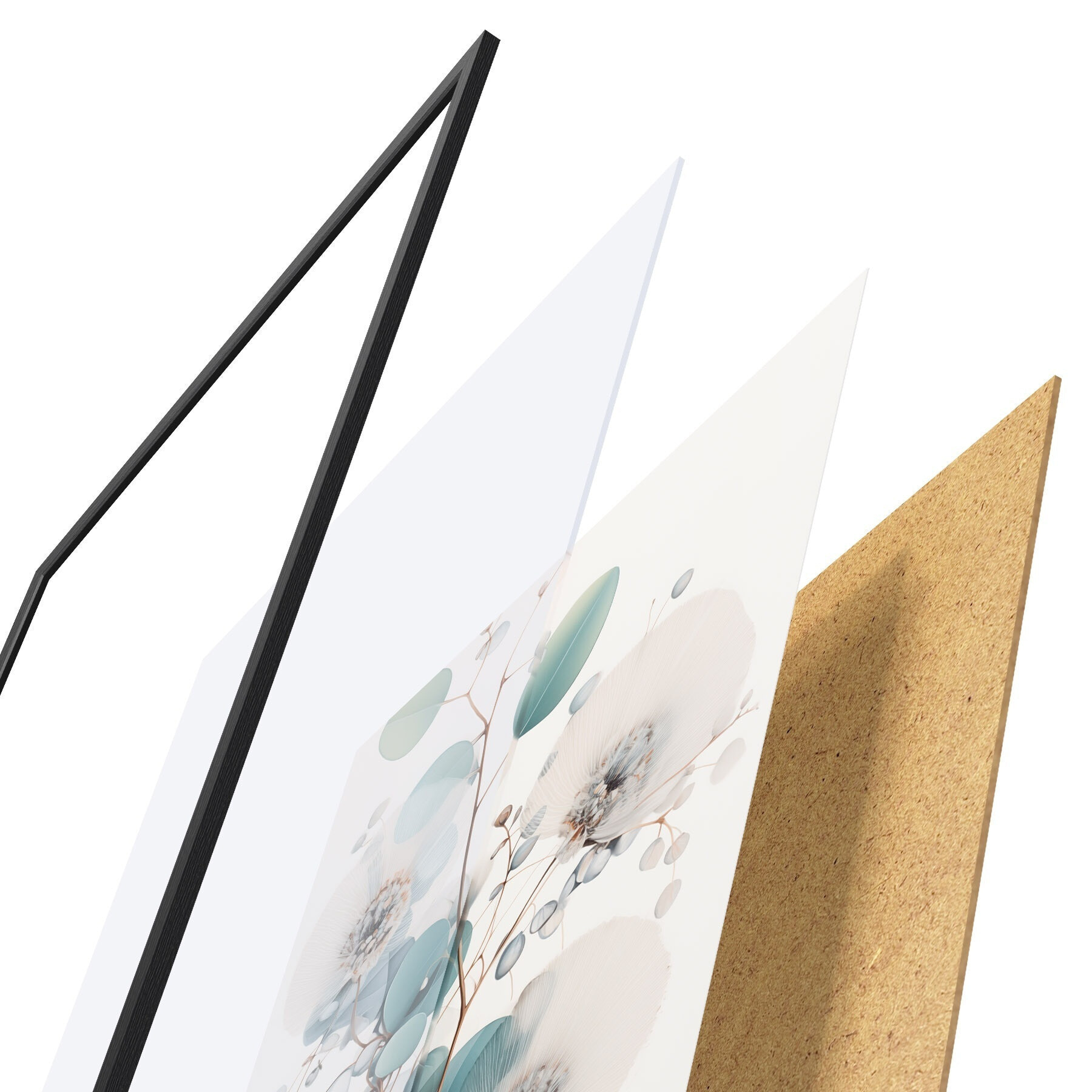 Plakát se skládá z rámu, plexiskla, tištěného obrazu a dřevotřískového podkladu. Díky úchytům na zadní straně lze plakát ihned zavěsit na zeď.