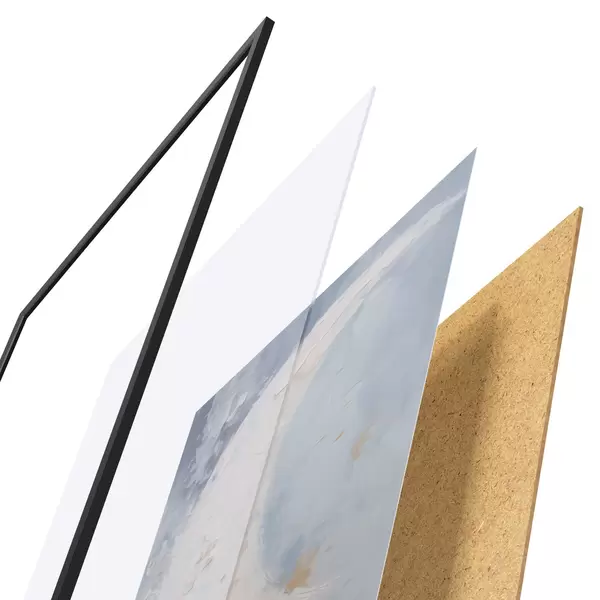 Plakát se skládá z rámu, plexiskla, tištěného obrazu a dřevotřískového podkladu. Díky úchytům na zadní straně lze plakát ihned zavěsit na zeď.