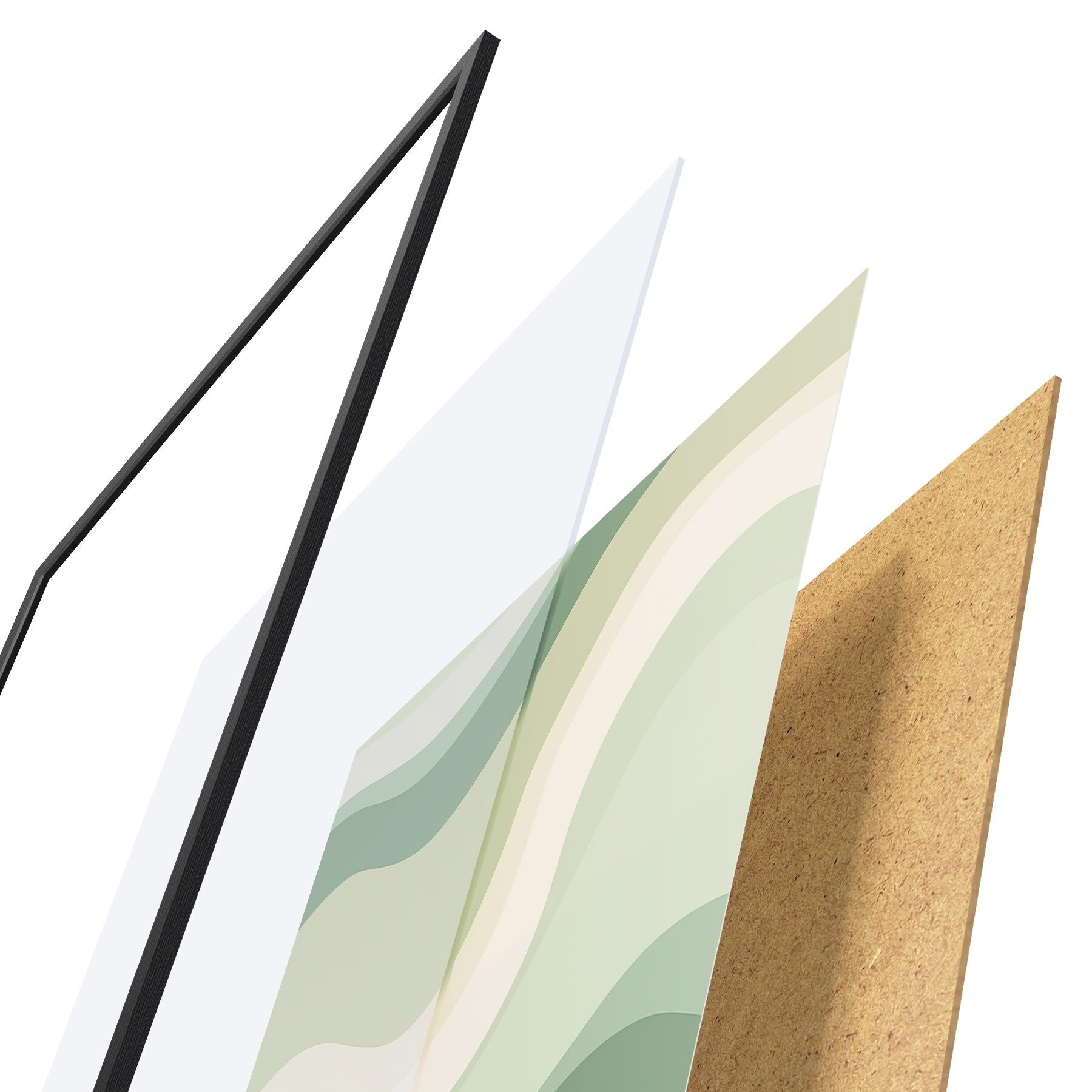 Plakát se skládá z rámu, plexiskla, tištěného obrazu a dřevotřískového podkladu. Díky úchytům na zadní straně lze plakát ihned zavěsit na zeď.