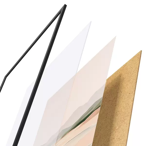 Plakát se skládá z rámu, plexiskla, tištěného obrazu a dřevotřískového podkladu. Díky úchytům na zadní straně lze plakát ihned zavěsit na zeď.
